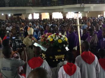The Archbishop of Benin City, Most Rev. Dr Augustine Akubeze, Bishop of Bomadi, Most Rev. Dr Hyacinth Egbebor, Priests, Religious and lay faithful from different parts of the country gathered at the Sacred Heart Catholic Cathedral, Warri on the 13th of March, 2018 at the Funeral Mass presided over by the Catholic Bishop of Warri, Most Rev. Dr John Okeoghene Afareha, to bid farewell to Rt Rev. Msgr Joachim Ogheneochuko Aghware (aka Msgr Cardy) who died February 22, 2018.